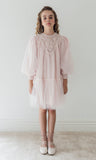 • PETITE AMALIE "Fantasque" Vintage Yoke Tulle Smock Dress in Powder Pink