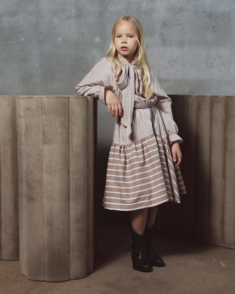 UNLABEL SS26 Erin Dress in Cacao Stripes
