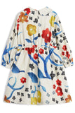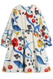 Long sleeved dress with waist adjustable straps, round collar and back zipper