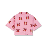 This Beach Cropped Shirt brings a playful, sunny touch with its candy-pink base and all-over butterfly print that looks like they’re flitting and fluttering through summer adventures. Made from 100% organic cotton, it feels soft, light, and comfortable on warm days. The neat collar adds a little structure while keeping the shirt easy to wear, and the front popper placket makes dressing and layering simple and fuss-free.