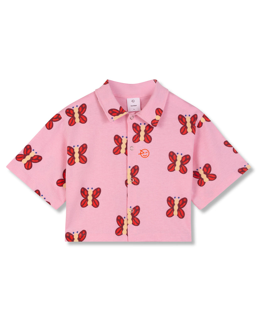 WYNKEN SS26 BEACH CROP ORGANIC COTTON SHIRT in BUTTERFLY PRINT