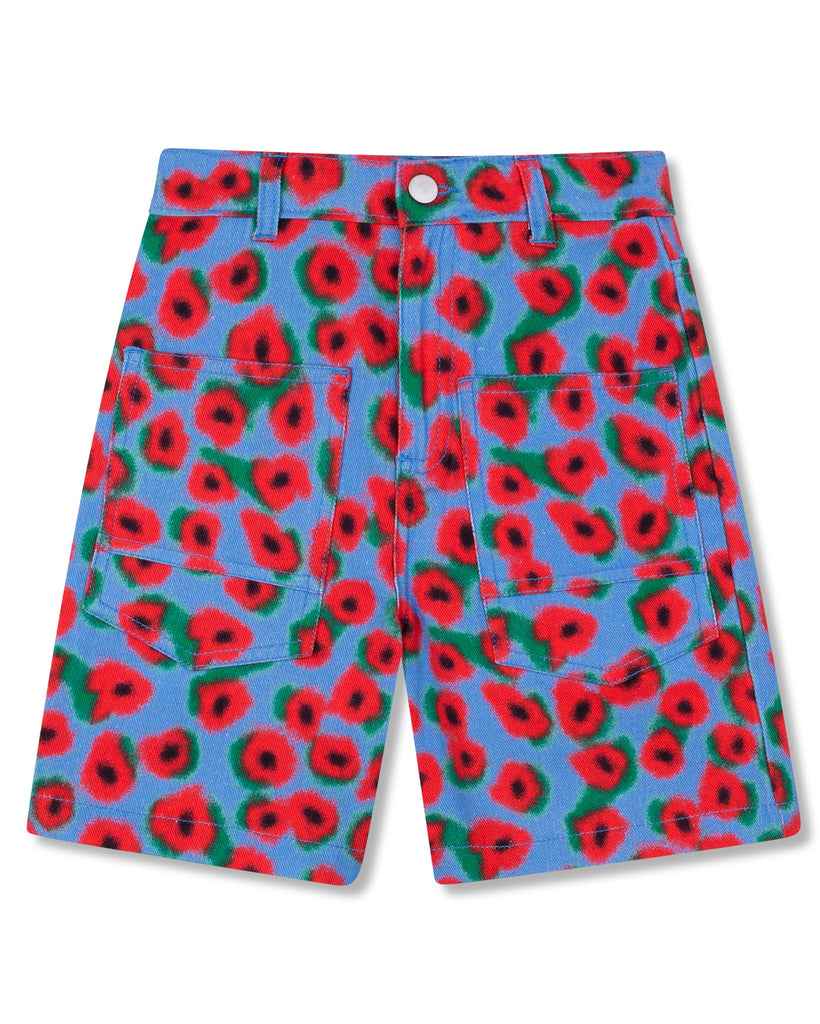 Does it get any more British than poppies? These playful all-over floral poppies bring colour and cheer to every outfit, perfect for sunny days. Crafted from soft, durable cotton denim, the shorts are comfy for all-day play. A hidden elastic and button waistband ensures an adjustable fit, ideal for growing kids or extra security. Deep front pockets and square back pockets offer plenty of space for little treasures, with a cheerful printed yellow Wynken branding on the back. Pair with the Bacia Denim Gillet for a coordinated, fun summer look.