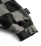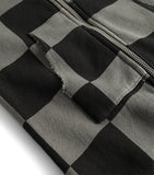 give your baby the champion aesthetic before they’re even able to win every game. it’s easy & totally chic with this super soft smokey natural french terry long sleeve baby overall with distressed edges. it’s got a classic chess inspired print and a black lined hood for that mysterious look. a baby safe covered zip splits the totally cool kangaroo pockets and crotch snaps offer the quickest changings of your life. plus our logo is on the chest looking like hot lime teeth ready to warn the competition. so, go ahead. tell the world that the tiny human wearing this fit has always been a winner.