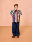 The Dutch tulip fields seen from above were the inspiration for this design. By hand we drew the stripes of print Pieternella. The colours look good with the fake fur inside lining of this straight fit winter coat.  -100% Recycled Polyester (outer layer & filling) -