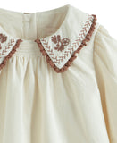 Baby cotton dress with cream embroidered collar. Cotton lining