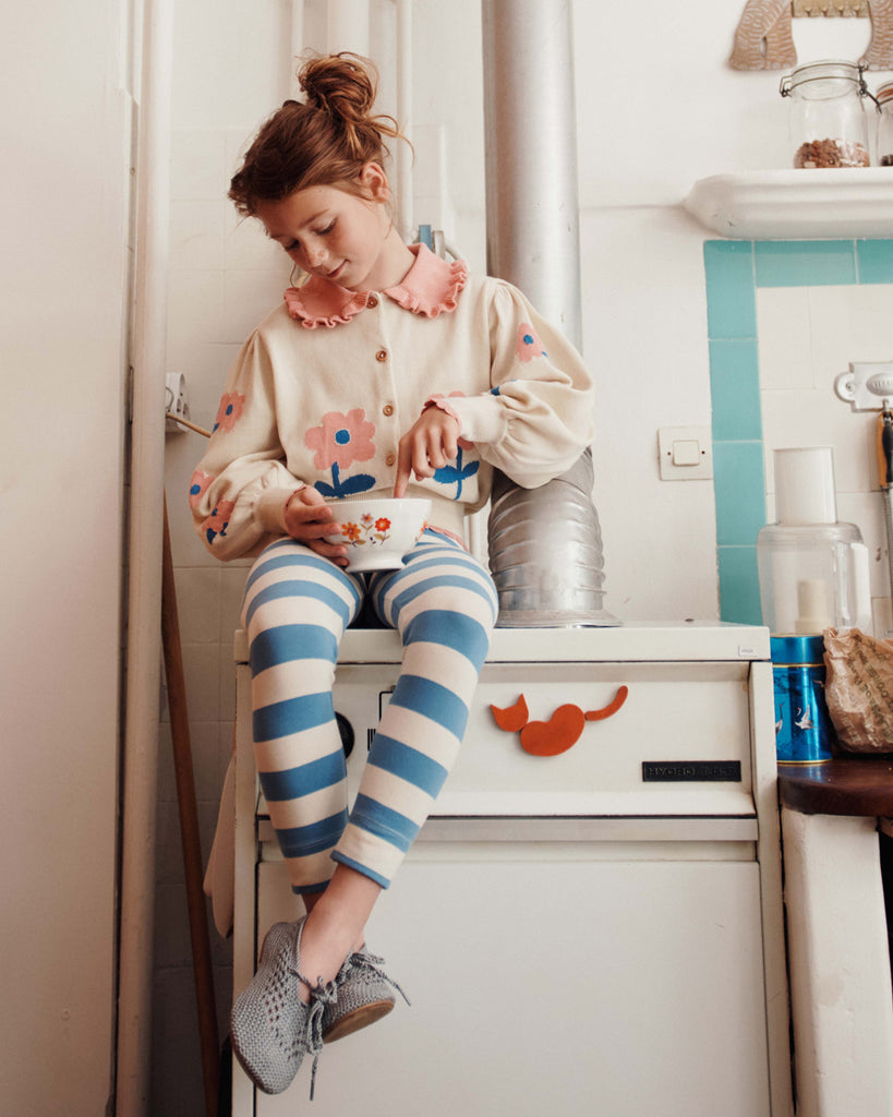 EMILE ET IDA SS26 Collared Short Sleeve Sweater with Spring Intarsia