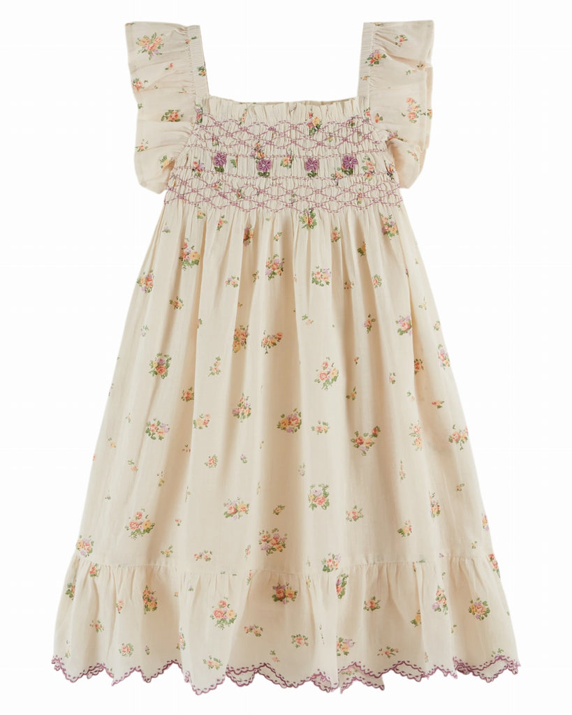 EMILE ET IDA SS26 Chambray Smocked Embroidered Dress
