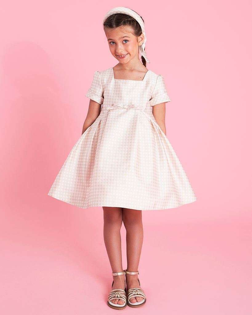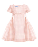 MIMISOL Spring Summer 2026 VICHY-MIKADO GATHERED DRESS in SALMON