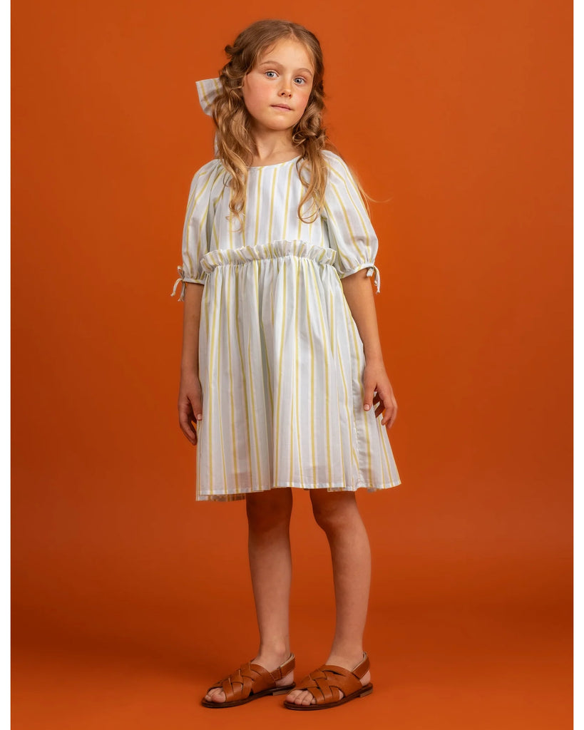 The Ivy Dress Cotton, Mint is a breath of fresh spring air — light, floaty, and softly enchanting. Crafted from gentle cotton in a pale mint hue, the dress features airy puff sleeves and a gathered waist that brings just the right touch of volume. Its subtle checks add a hint of playful texture, while the relaxed silhouette keeps it beautifully comfortable for everyday adventures. Sweet, refreshing, and effortlessly chic, the Ivy Dress feels like strolling through a garden in the early morning light.