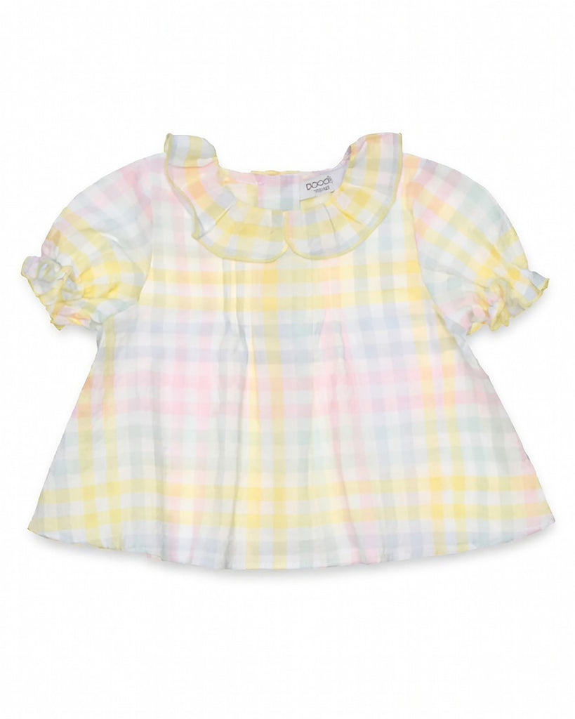 The Marissa Baby Blouse Cotton, White is a timeless little piece designed with softness and simplicity in mind. Made from cotton in a checks, it features a gentle, airy shape that allows for comfort and easy movement. Delicate detailing adds a quiet charm, making Iris a beautiful choice for warm days, special moments, and everyday baby dressing.