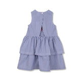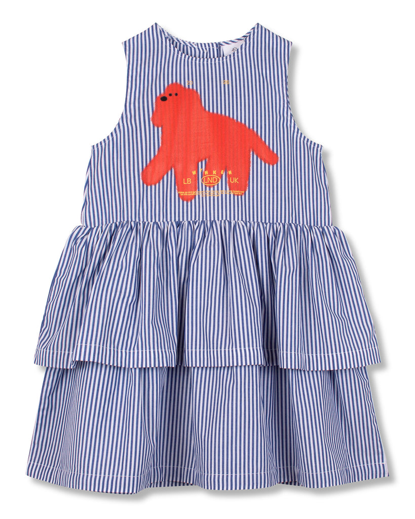 Light and soft, this dress is made from 100% cotton and ideal for warm summer days. Fine blue stripes create a fresh base, while the red dog print on the front adds a playful pop of colour. The double-layered skirt brings gentle volume and movement. Finished with a single button at the back and a small open-back detail, it’s easy to wear and pleasantly airy on hot days.