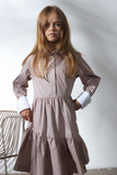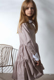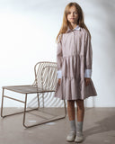 NUNUNU SS25 STAR COLLAR DRESS in Natural with Pink Stars