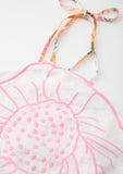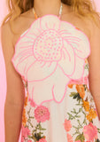 Elegant halter neckline with statement floral detail