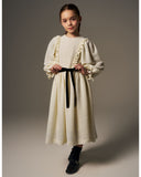 MiMiSol FW24 FLOCK POLKA-DOT ORGANZA DRESS in Cream