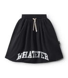 the perfect skirt doesn't exist… wait, this one is literally it. it’s a sporty look with secret pockets and a cinched drawstring waistband that ensures it stays put. it's made of soft, sheer black voile for those girlie vibes but of course we edged it up with a raw hemline on the bottom for that frayed look. oh yeah, and it says whatever arched across the bottom in a collegiate kind of font. because whoever wears this will look too cool to care about anything else.