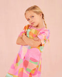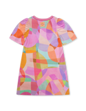 By placing various shapes and colours over each other, we created print Shapes. It makes this dress look like a prism of colours. - 96% Organic Cotton, 4% Elastane - Made in N-Macedonia