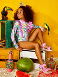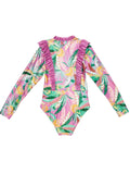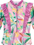 Stay sun-safe and stylish with the Copacabana Rashini! With long sleeves and a scalloped frill around the neckline, it's perfect for protecting your skin from the tropical rays. Plus, it zips up for easy wear. It's the perfect choice for a beach party that's hotter than the Rio sun, by Tutu Du Monde