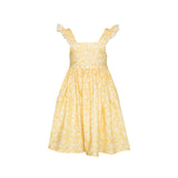 Brighten up your little one's wardrobe with the Linen-Blend Dress with Ties Mimi in Yellow. Showcasing a sunny floral pattern and delicate ruffle accents on the straps, this dress brings a cheerful charm to any occasion. The flowing, gathered skirt creates a classic and playful silhouette, perfect for twirling. Made from a lightweight linen blend, it ensures all-day comfort and breathability. With adjustable back ties, this dress is ideal for family outings, garden parties, or sunny day adventures. A versatile piece for your child’s stylish and fun wardrobe.