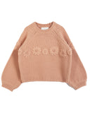 MiMiSol FW24 JACQUARD-ROSE WOOL SWEATER in Beige