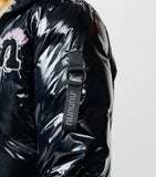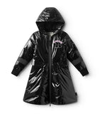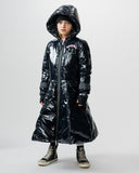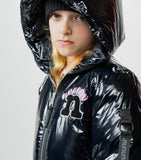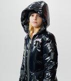 get ready to get glam with this rad hooded down coat. it’s made of a shiny material that makes you just want to dance with a black reflective stripe on the left and right sleeves. it looks like the kid wearing it is getting ready to go on stage any minute with a nice long zipper that’ll keep their costume a surprise. it's got our bubbly nununu logo on the chest in pink right on top of a super fuzzy & totally touchable embroidered n patch. the ribbed cuffs feature cool kid thumbholes plus flap pockets on each side are a great place to stash their good luck charms. of course, it's got inside shoulder straps for taking it off and wearing it like a backpack because they would never want to lose this killer piece.