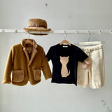 TAGO AW2024 Felted Wool Coat with Hand Knit Sleeves