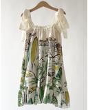 TAGO SS25 Short Sleeve Printed Dress in Ecru