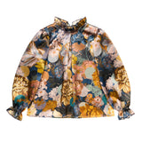 The Silk Blouse Felice in Blue is all about softness, shimmer, and standout style. Made from 100% silk, it’s light as a feather and smooth to the touch—perfect for dress-up days or simply feeling fancy. The dreamy floral print mixes golden yellows, deep blues, and pastel accents for a magical, garden-inspired look. With a ruffled collar, gathered sleeves, and a relaxed shape, it’s as comfortable as it is beautiful. Pair it with the matching silk pants or let it shine on its own!
