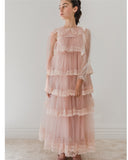 • PETITE AMALIE "Enchanted Delight" Long Sleeve Mauve Layered Tulle Gown