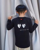 Made from organic cotton, this classic fit, long sleeve t-shirt features 'I See You' on the front, and heart eyes with 'Ready Or Not, Here I Come' on the back. It also features our signature hero mask at the nape of the neck. Easy to wear and easy to care for.