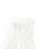 Fit your little one in this offwhite tatting dress with waist bows and bird cross-stitch embroidery , where the graceful bows and beautiful bird embroidery come together for a timeless nature-inspired look.
