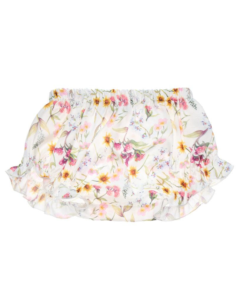 The Eden Baby Bloomers are a sweet, comfortable piece designed for warm days. Made from soft viscose with a delicate multicolour floral print, they feature elasticated leg openings that sit gently and allow easy movement. Light and airy, they’re perfect worn on their own or paired with the matching blouse for a coordinated summer look.