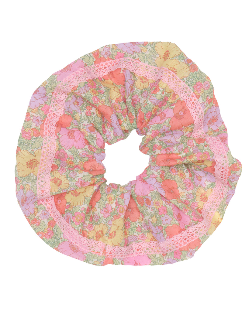 The Eloise Scrunchie Cotton, Multicolor is a cheerful little accessory full of colour and charm. Made from cotton Liberty fabric with a lively multicolour floral print, it’s finished with delicate lace detailing for an extra touch of sweetness. Soft and comfortable to wear, Eloise is perfect for ponytails, buns, or simply worn on the wrist as a playful summer accent.
