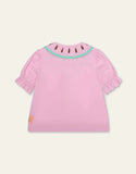 This poplin blouse is a summerfeast with its cheerful colour, the fun watermelon collar, the enamel buttons and the sweet puffed sleeves. - 100% Cotton - Enamel buttons - Made in India