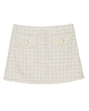 Introducing our a-line Aubazine Skirt in Marshmallow! Featuring textured trims with pearl embellishments, decorative pockets complete with gold heart buttons and lurex yarns add a touch of sparkle. Pair this timeless bouclé skirt with our Aubazine Jacket for the perfect combination.