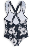 Swimsuit with crossed back straps and frill, UV protection 50+