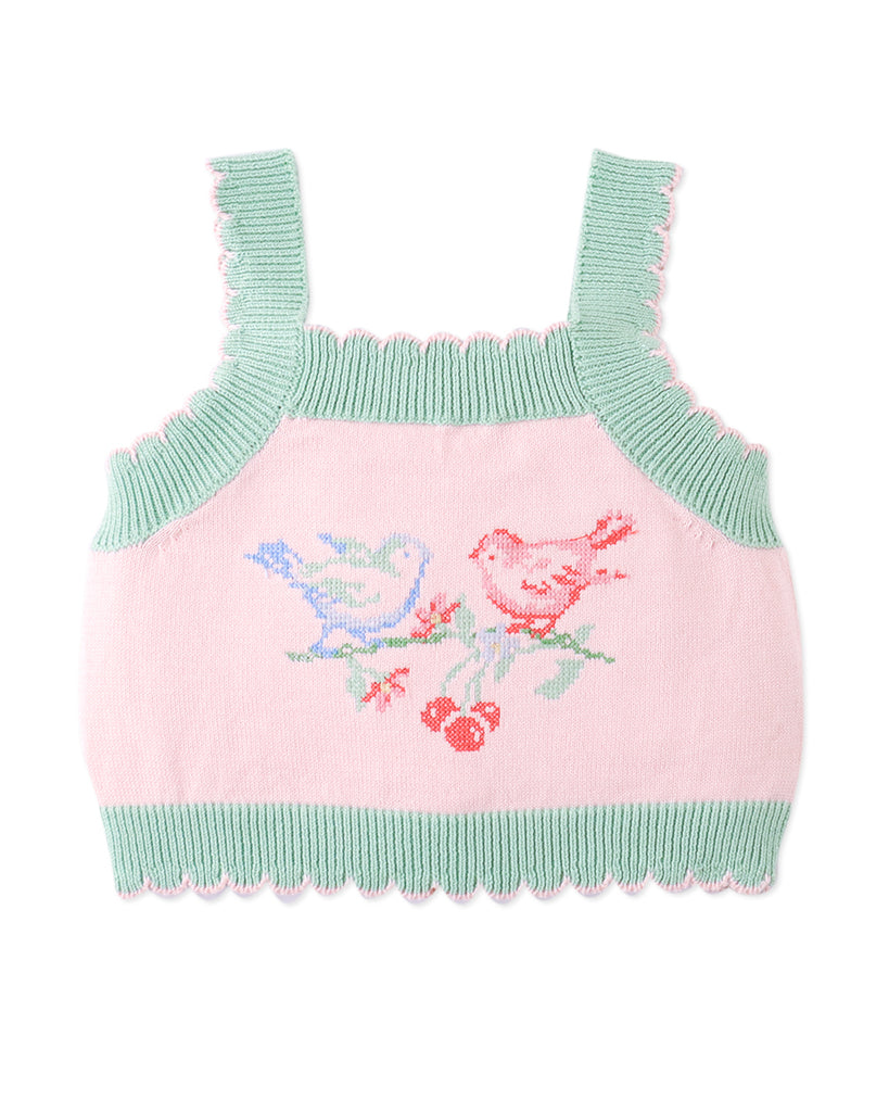 GINGERSNAPS SS26 Baby Rosé Combed Cotton Knit Top with Heart Intarsia Design