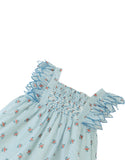 Embracing the essence of spring, this apron dress features a smocked bodice and fluttering petal sleeves, adding an extra touch of sweetness to your child’s wardrobe.