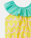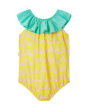 This novelty pineapple romper from Stella McCartney Kids is crafted from bright yellow organic cotton jersey. With a green scalloped edge collar, the romper looks like a soft, wearable pineapple – a playful choice for resort wear and baby's first summer.