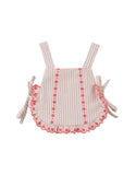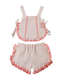 Perfect for baby playdates, this breezy set features a red striped seersucker blouse with scalloped ruffles and matching shorts.
