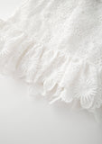The Lucinda Embroidered Mini Dress is a classic Marlo silhouette reimagined in crisp ivory tones. Featuring delicate embroidery and soft frill detailing, this dress feels elegant, refined, and effortlessly sweet. Perfect for special occasions or elevated everyday wear, the Lucinda is designed to make every moment feel a little more special.
